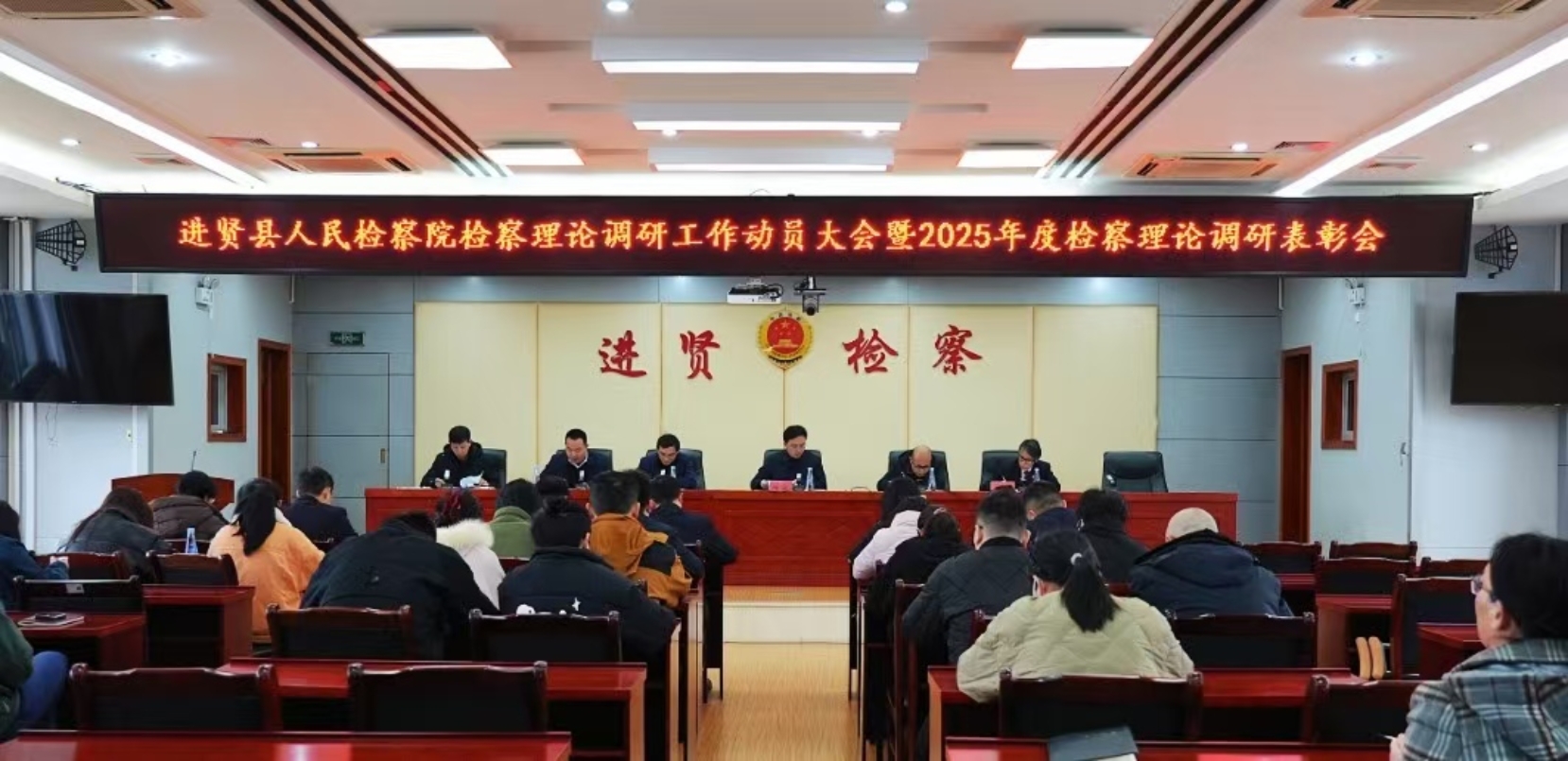 为深入学习贯彻习近平法治思想,推动检察理论研究与司法实践深度融合,激励全院干警深耕调研、担当作为,3月9日上午,进贤县人民检察院召开检察理论调研工作动员会暨2025年度检察理论调研表彰会,总结成绩、表彰先进、部署任务,为新一年检察理论调研工作定方向、明举措、鼓干劲。
