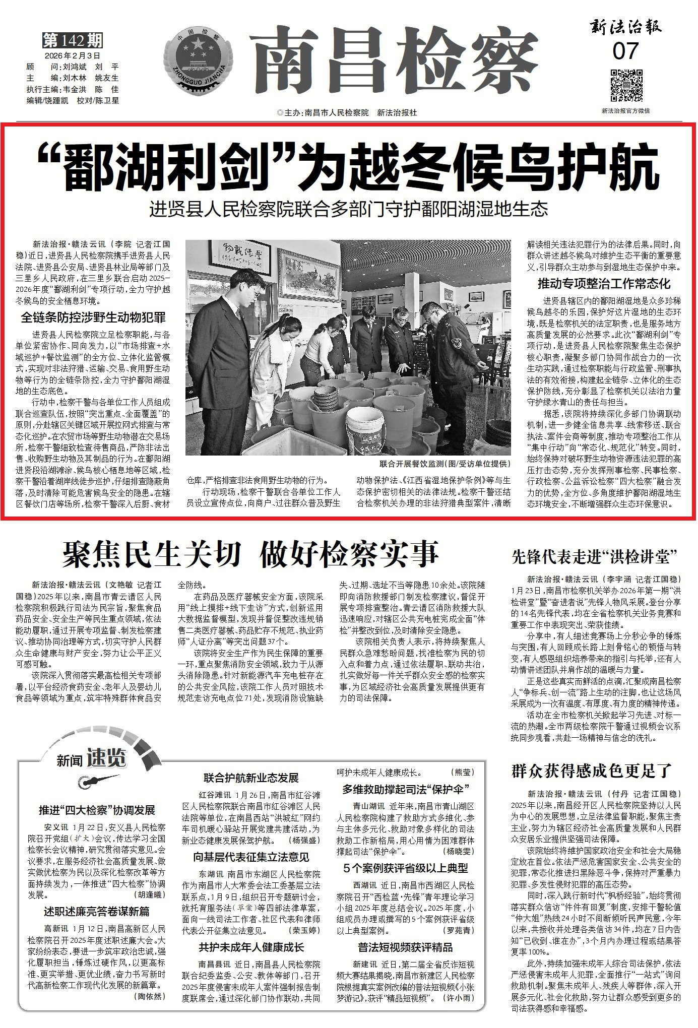 新法治报2月3日报道:“鄱湖利剑”为越冬候鸟护航